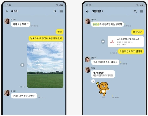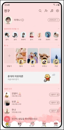 보이는 친구 리스트나 대화방은 현재 휴대폰에서 사용하는 카카오톡과 동일하며, 동일한 대회 내용을 똑같이 보실 수 있으며, 대화도 가능합니다.